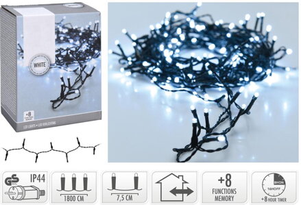 Svetlo vianočné 240 LED studené biele, 18 m, s časovačom, s funkciami, vonkajšie/vnútorné