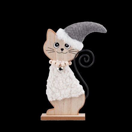vianočná postavička, dekorácia, mačka, materiál drevo, rozmer 17x5x25 cm, farba rpírodno-sivá