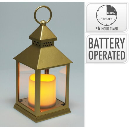 Lampáš svietnik s LED sviečkou, rozmer 23 cm, materiál plast/sklo, 3xAAA batérie (nie sú súčasťou), časovač 6/18 hodín