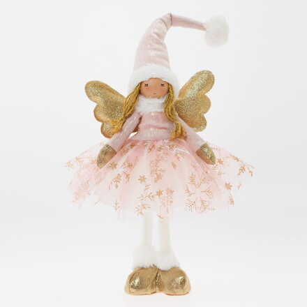 Postavička anjel stojaci LED 50 cm textil ružovo-zlatý