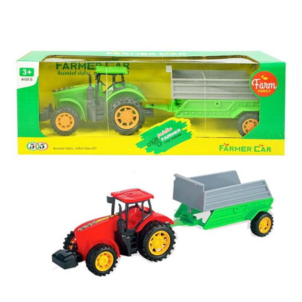Traktor s vlečkou, na zotrvačník Hračka je určená pre deti 3+. Rozmer hračky je 7x26x6cm.