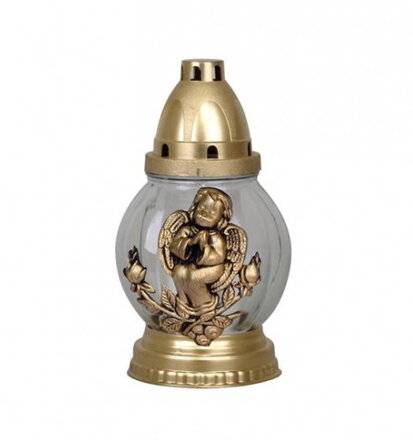 Klasický cenovo dostupný kahanec s anjelikom na hrob z číreho skla a s elegantnou čiapkou doladí hrob Vašich blízkych. Je vhodný aj na využitie pri dodekorovaní smútočných vencov a ikebán. Doba horenia: 18 hodín. Balenie obsahuje 9 ks. Uvedená cena je za 1 ks.