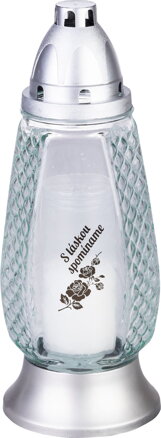 Tento elegantný kahanec je ideálnou voľbou pre úctu a spomienku na našich blízkych. Vyrobený z transparentného skla so strieborným zdobením, nesie slovenský nápis "S láskou spomíname", čo z neho robí citlivý a dojemný spôsob, ako vyjadriť svoje myšlienky a modlitby.