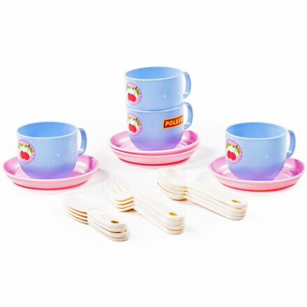 Čajový set pre štyri osoby, má rozmery 130х125х122 mm. Vhodné pre deti 3+.