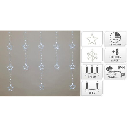Svetlo vianočné hviezdy/vločky 232/235 LED, biele LED svetlo s 8 funkciami, vonkajšie/vnútorné použitie, 3xAA batérie (nie sú súčasťou), časovač 6/18 hodín, 500 cm prívodný kábel, 30 cm vzdialenosť medzi žiarovkami, mix