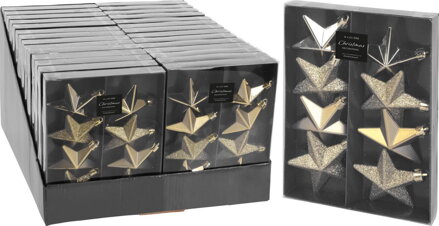 závesné hviezdy, plast, 6,5 cm, sada 8 ks leské/matné/trblietavé, zlaté