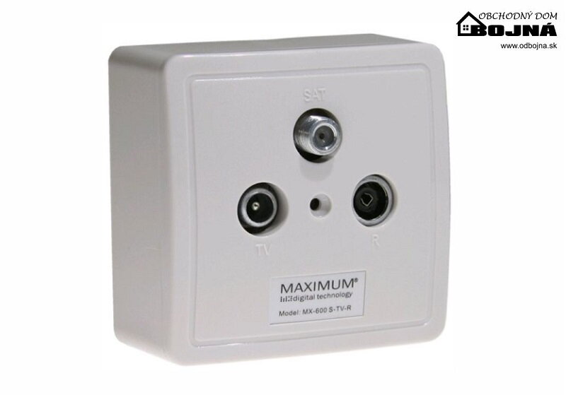 Satelitná / Televízna / Rádio koncová zásuvka vrátane krytu a rámčeka pre povrchovú montáž.